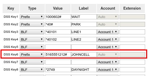 As an example we will configure DSS KEY 6. KEY 6 will be assigned to John's Cell and John's phone number will be 516-555-1212.