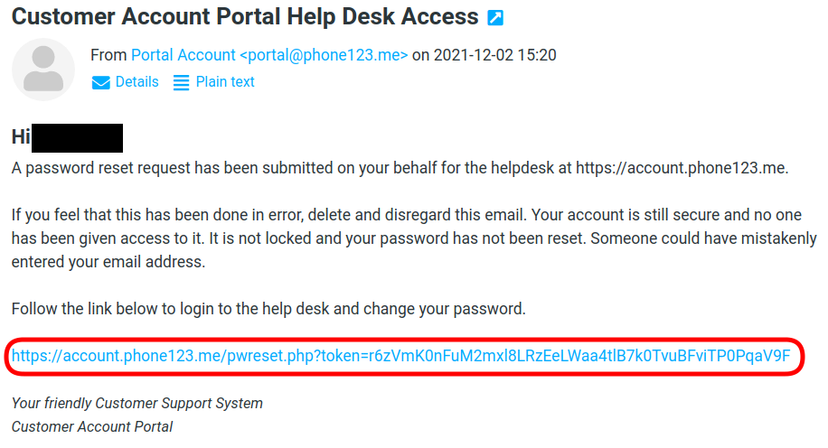 - Read the password reset email message.