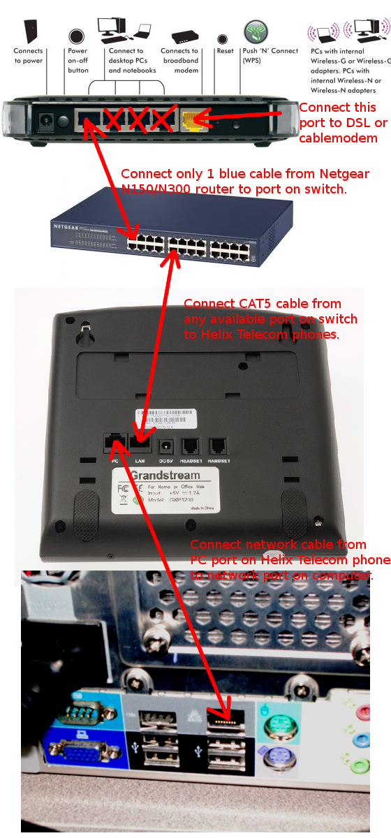If you prefer to use a different network topology then see the section below labeled Begin Troubleshooting. Helix Telecom does not offer technical support for internal network issues beyond what is found here.