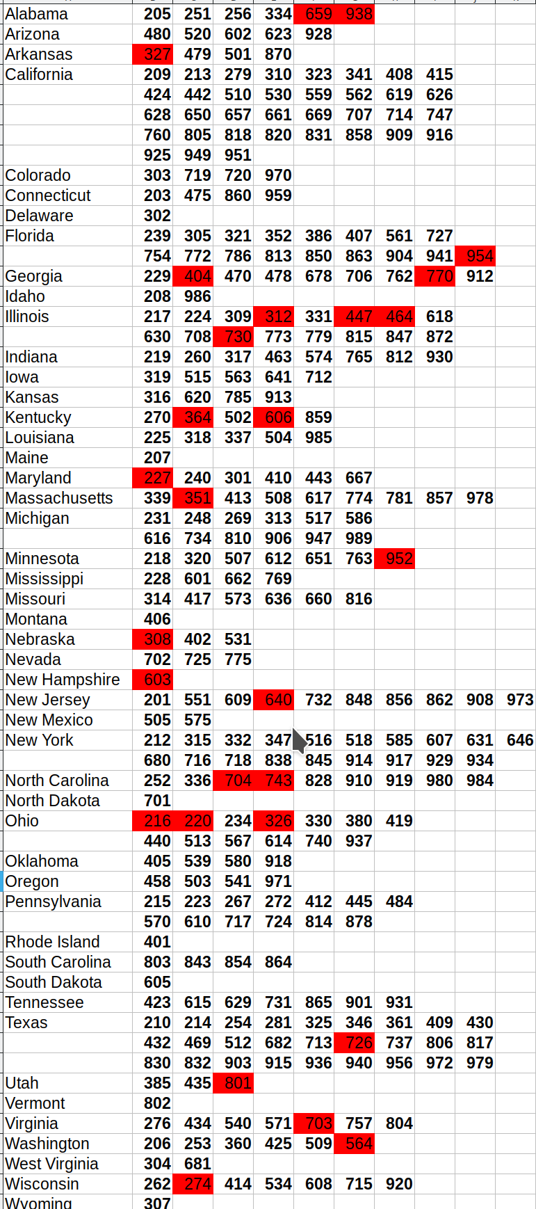 Customers may choose Dynamic Caller ID based on the state dialed or area code dialed. The chart below provides an general overview of area codes covered by Dynamic Caller ID but the specific area codes are selected at random by Helix Telecom staff when ordering service. Helix Telecom reserves the right to add, remove or substitute area codes or numbers based on state regulations, costs and other factors.